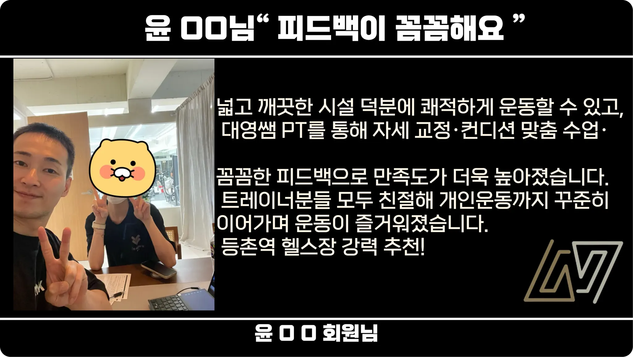 특히 대영쌤에서게 pt수업을 배우면서 운동에 대한 만족도가 더 높아졌어요.